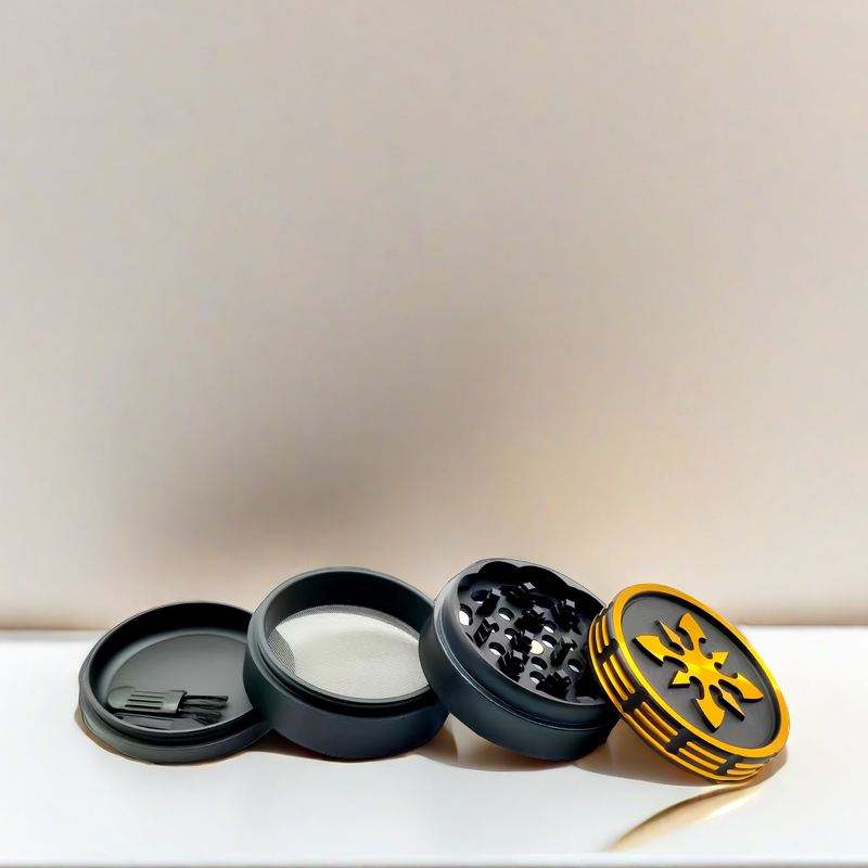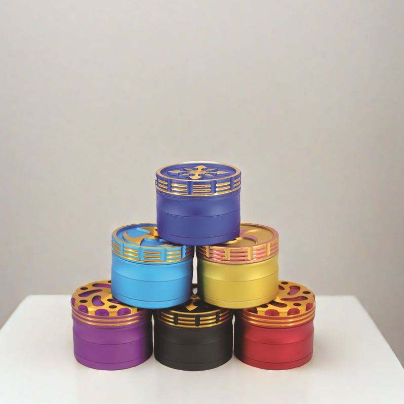 Moulin à épices décoratif en métal sur mesure en gros, 63 mm, 4 couches, moulin à herbes en aluminium