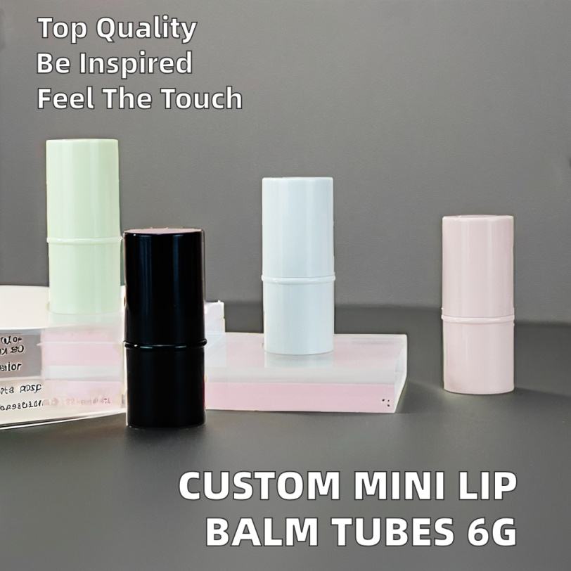Tube de baume à lèvres mini personnalisé en gros, capacité 6g, vide, en plastique, couleurs rose, noir, blanc, matériau ABS/PP, forme cylindrique