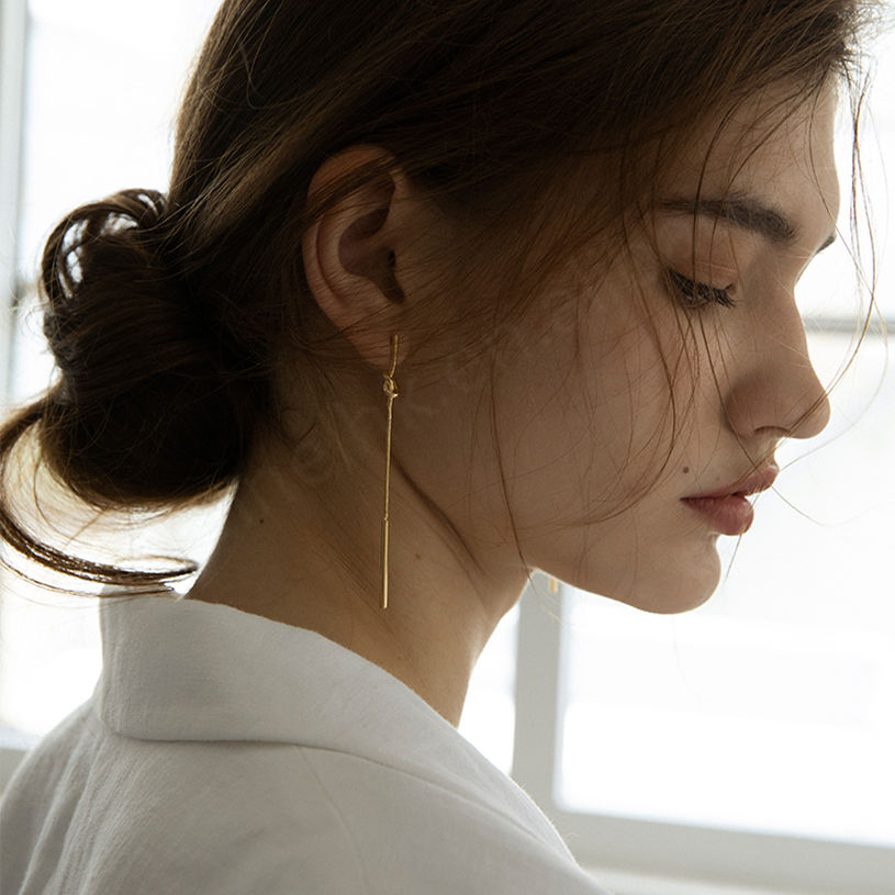 Nom du produit:Boucles d'oreilles longues minimalistes personnalisées en gros, fil d'or