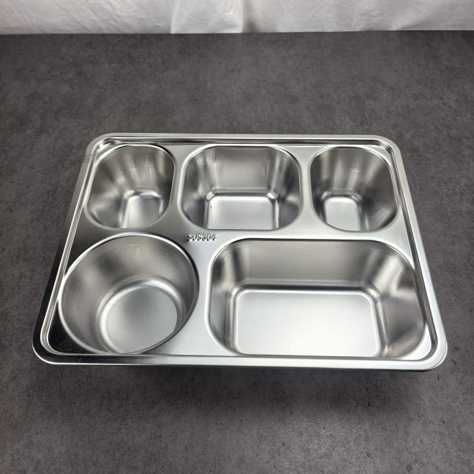 Vente en gros d'assiettes à dîner divisées en acier inoxydable 304 au design moderne personnalisé avec couvercles en acier inoxydable plateau alimentaire rectangulaire à quantité minimale de commande bas