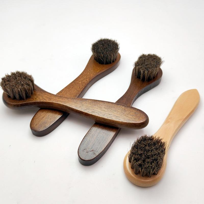 Wholesale Custom Natural Horsehair Shoe Brush Wooden Handle Shoe Polish Cleaning Brush