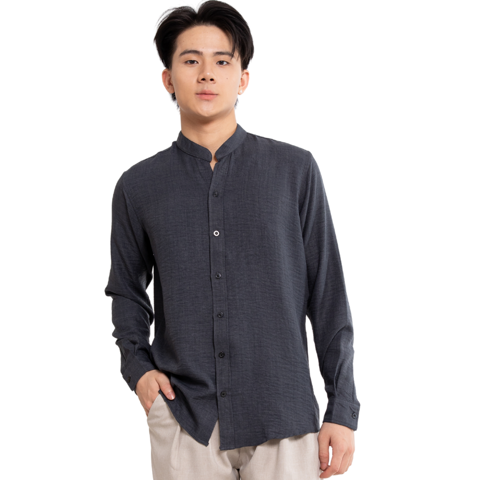 Chemises habillées pour hommes à manches longues, col mandarin, séchage rapide, personnalisées ODM, en polyester/coton, fabrication vietnamienne, vente en gros