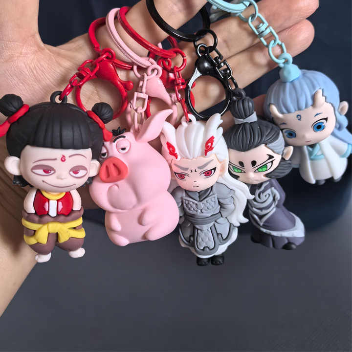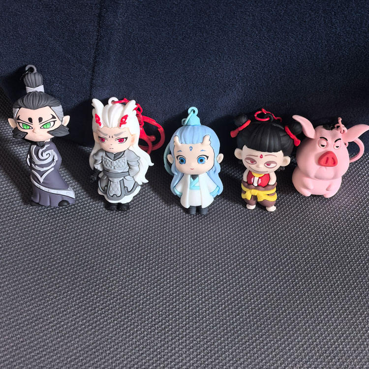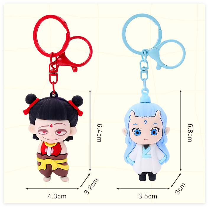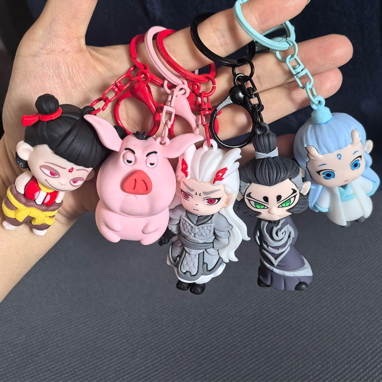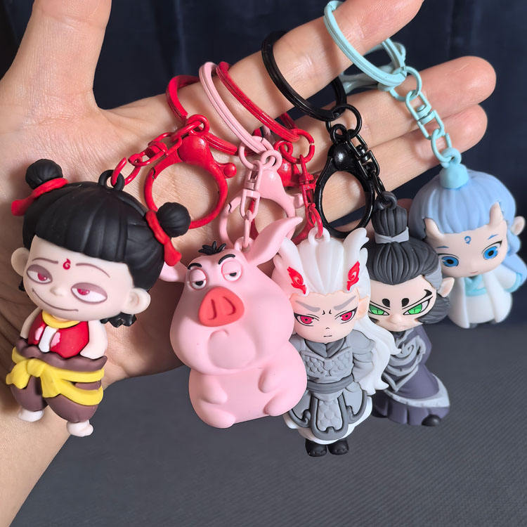 Vente en gros personnalisé d'une seule pièce chinois Unique personnage de dessin animé charme Art recueillir jouets miniatures 3d Anime Nezha Figurine porte-clés
