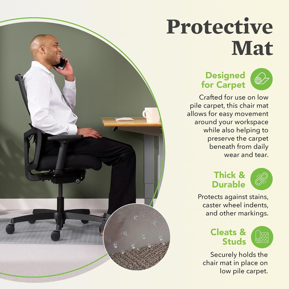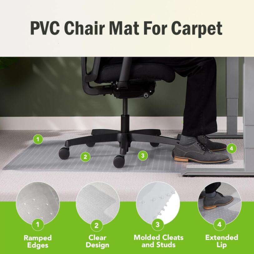 Tapis de chaise en PVC transparent personnalisé pour bureaux, idéal pour les sols moquettés à poils ras, avec rebord, tapis de chaise d'ordinateur pour moquette
