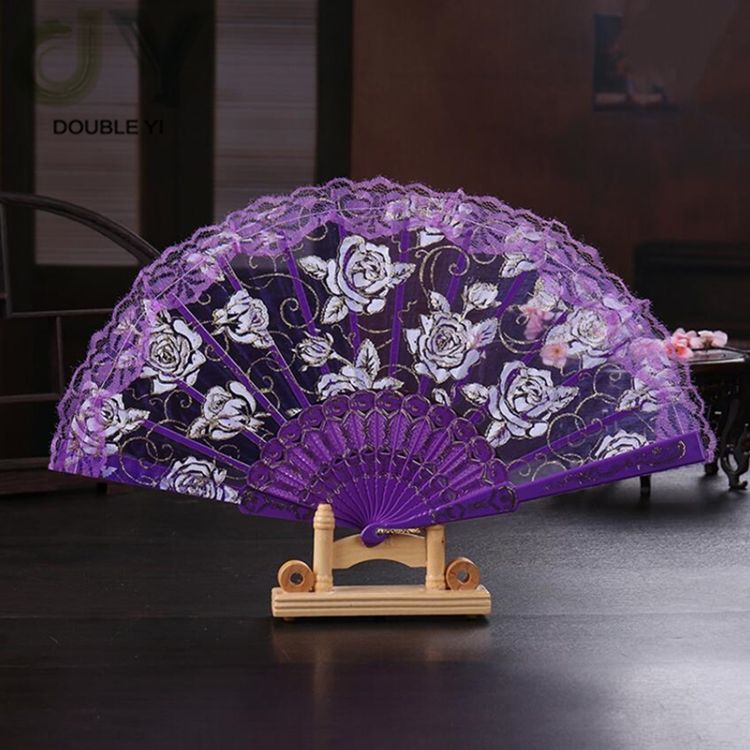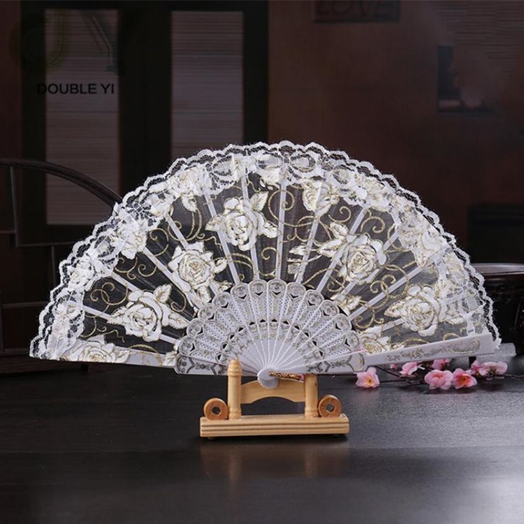 custom plastic lady folding lace sequin dance hand fans for wedding
