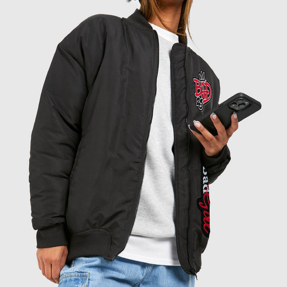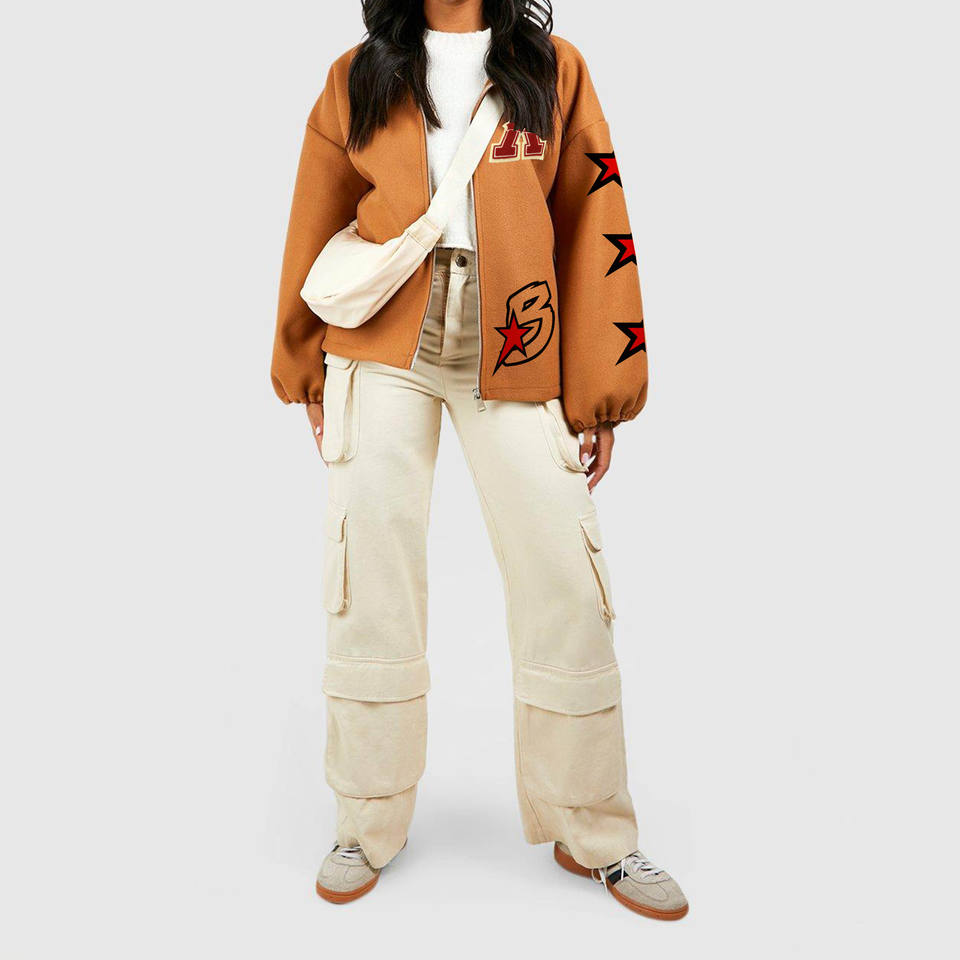 Blouson Bomber en Jean Réversible pour Femme, Grande Taille, Respirant, en Tricot, en Peau de Vache Écologique, Coupe-Vent, Automne Hiver, Vente en Gros Personnalisée