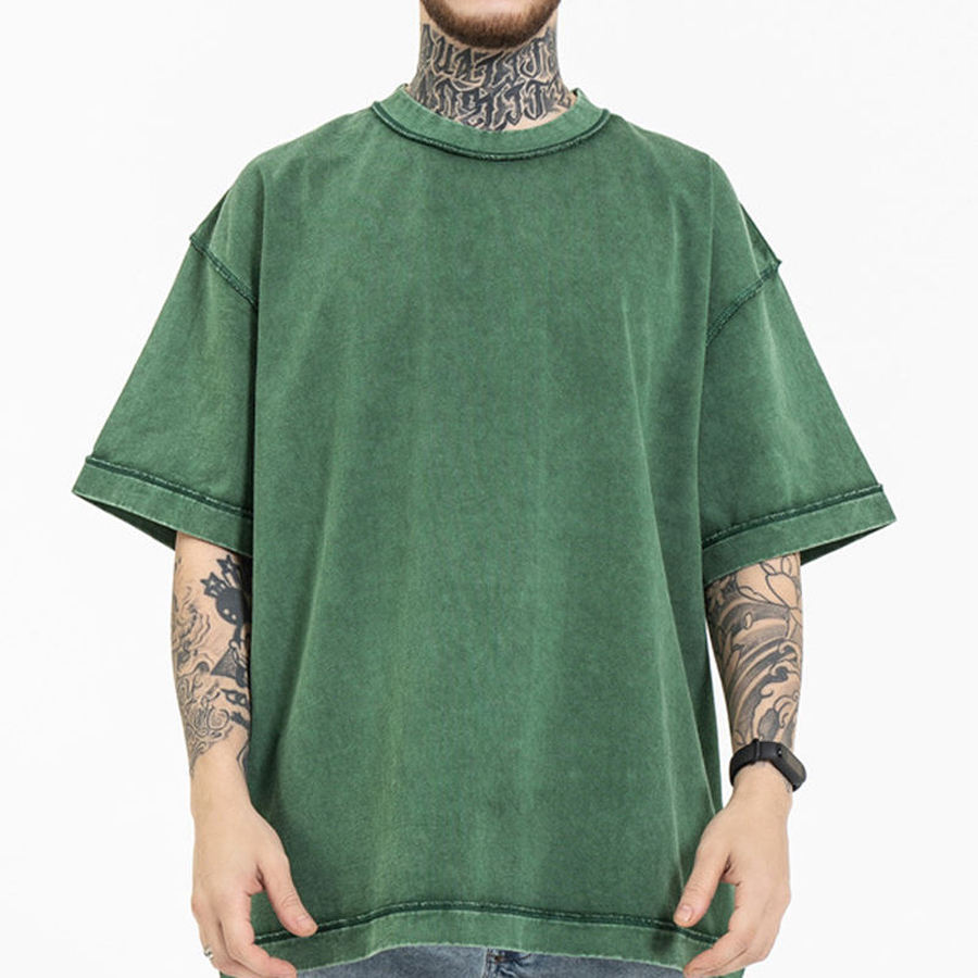 Wholesale Custom Plus Size O-Neck Vintage T-Shirt Breathable Jersey Short Stone Acid Wash Effect Solid Design Haus Industries