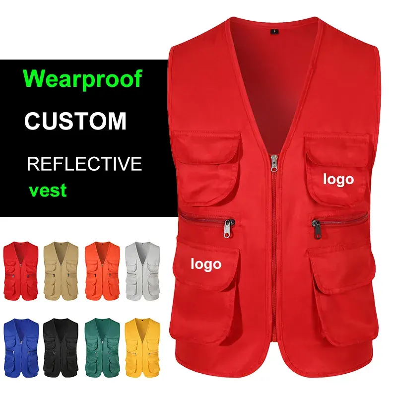 Veste de travail sans manches en polyester personnalisée pour photographe, avec n'importe quel logo, vente en gros