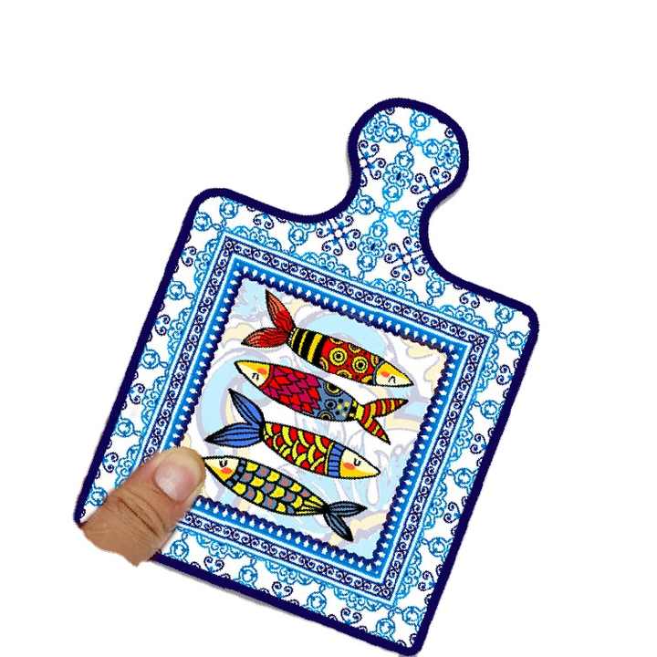 Vente en gros Plaque découpée pour trépied en céramique imprimée de style portugais Tapis et tampons en céramique sublimés avec fond en liège