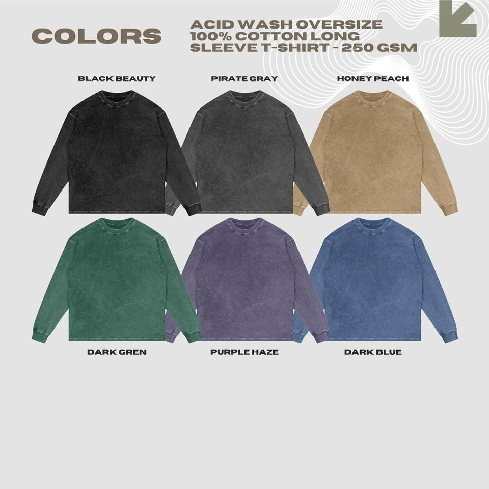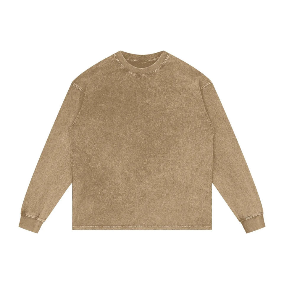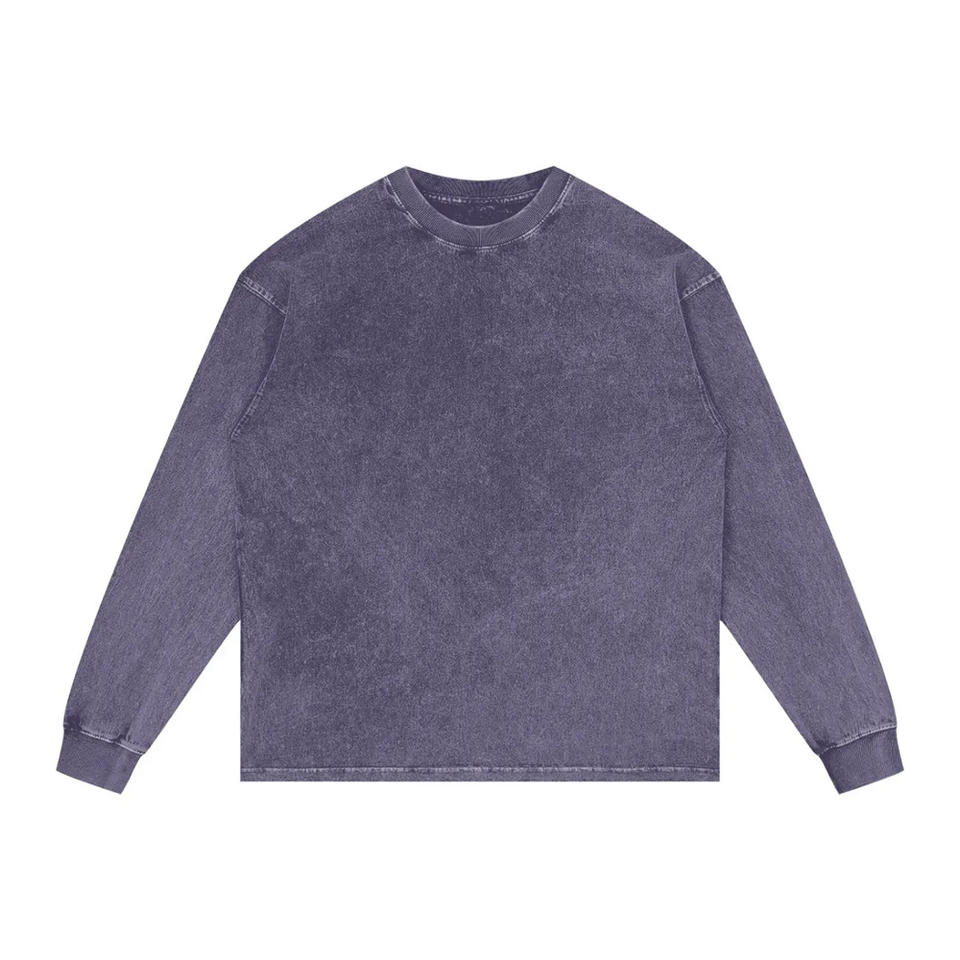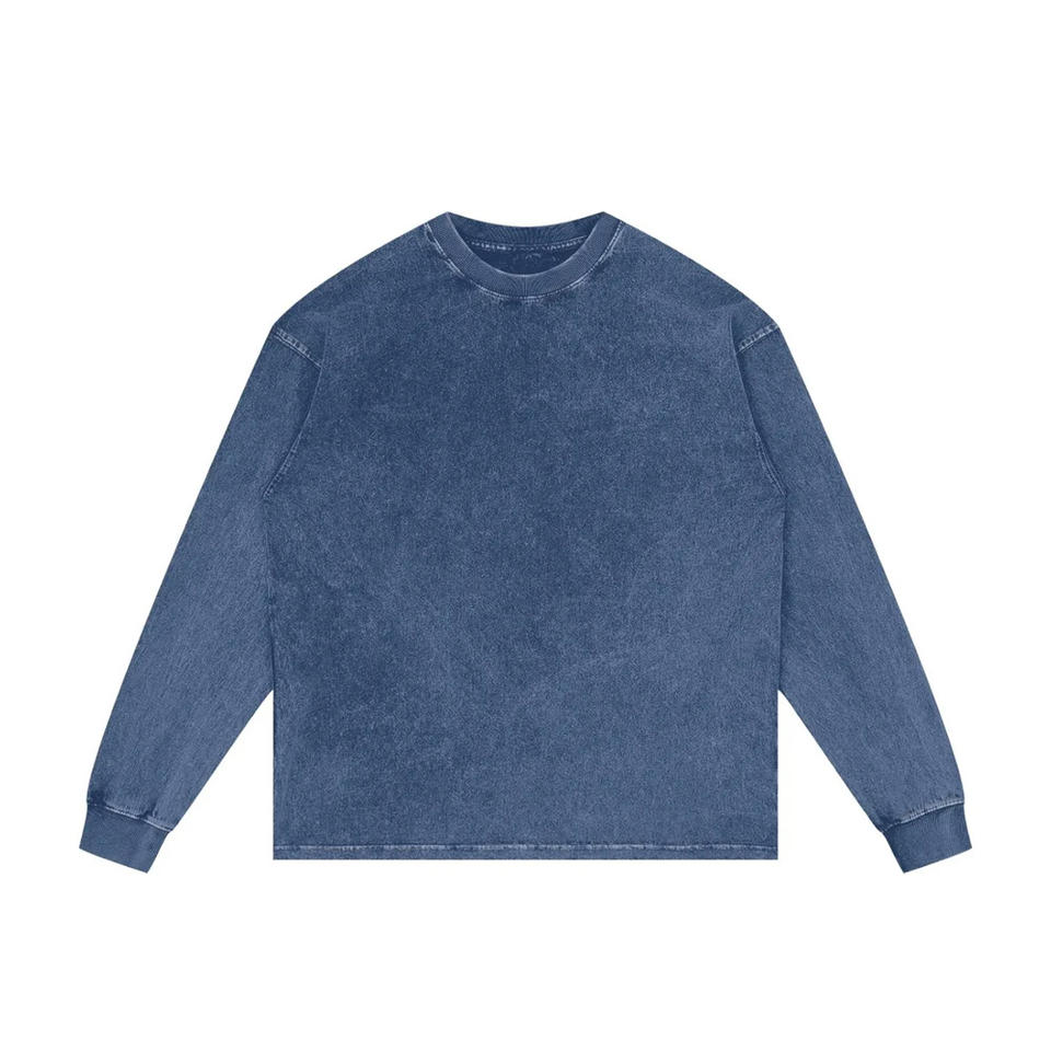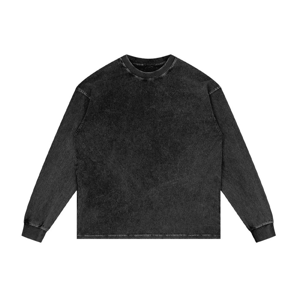 Vente en gros T-shirt à manches longues surdimensionné 100% coton délavé à l'acide avec logo imprimé personnalisé Maillots à manches longues vintage vierges et respirants