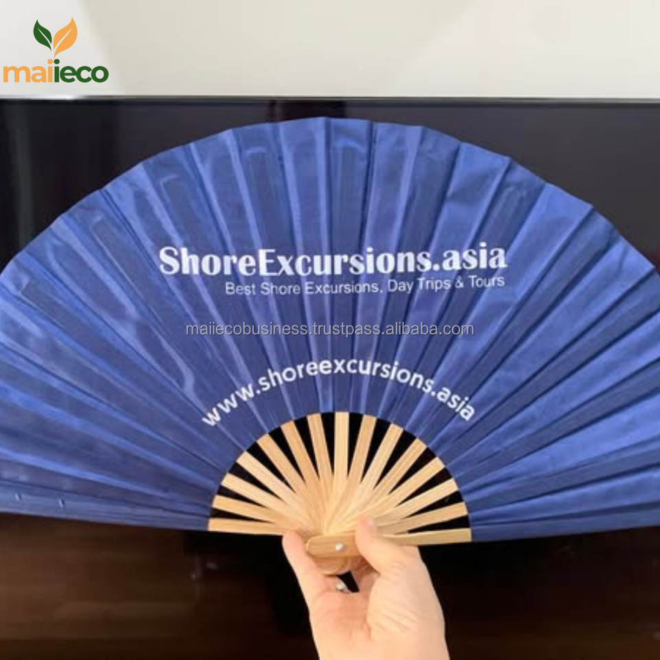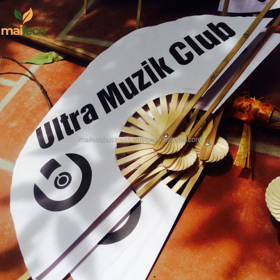 Vente en gros Ventilateur pliant portable en bambou écologique du Vietnam Logo imprimé personnalisé pour l'artisanat traditionnel de mariage