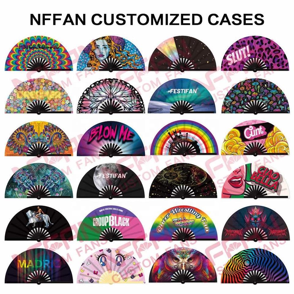 Wholesale Custom Printed Neon Folding Bamboo Clack Hand Fans Personalized Plastic Crafts for Dance Music Festivals EDM Raves