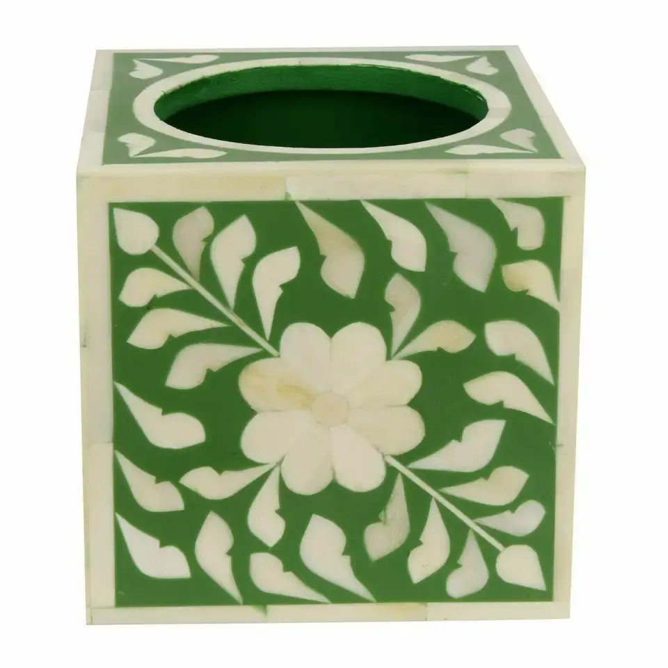 Vente en gros Boîte de rangement pour serviettes carrées imprimée personnalisée Porte-mouchoirs en tissu incrusté d'os avec décor de table en bois et résine