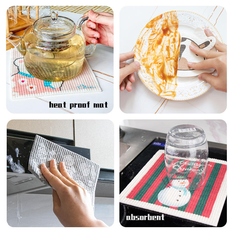 Torchons de nettoyage de cuisine réutilisables suédois à impression personnalisée en gros torchons éponge en cellulose suédois torchon