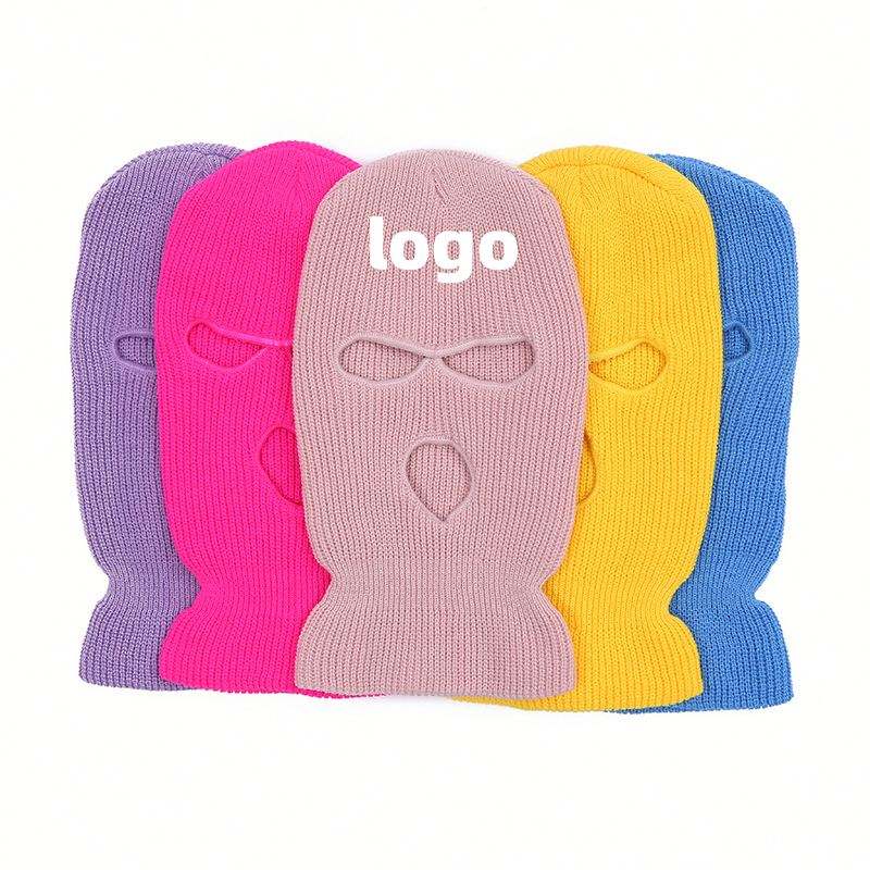 Vente en gros de masques de ski en tricot brodés de qualité supérieure, personnalisés, couvrant tout le visage, à 3 trous, bonnet d'hiver pour hommes et femmes