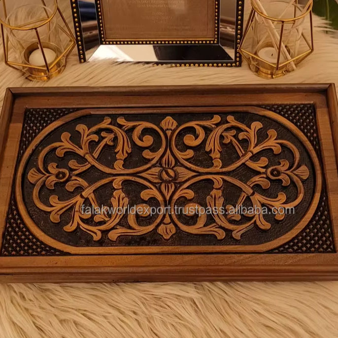 Vente en gros de plateaux de service de restaurant rectangulaires en bois personnalisés pour les services hôteliers de Falak World Export