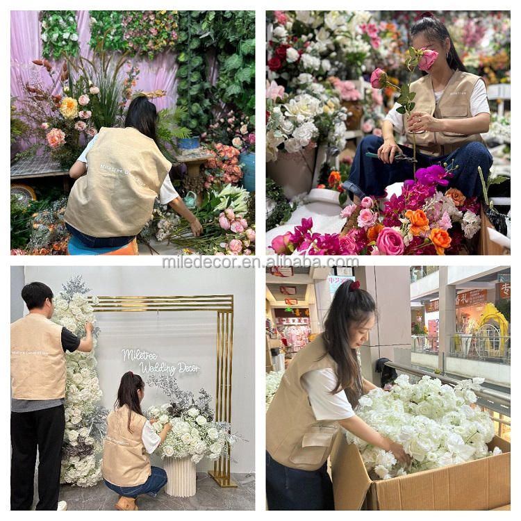 Vente en gros de chemins de table en fleurs artificielles en soie rouge personnalisées pour la décoration de l'arche de mariage