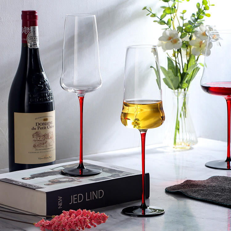 Verre à vin rouge et noir personnalisé en gros, gobelet en cristal soufflé à la main, nouveau nœud papillon noir sur pied haut pour verre
