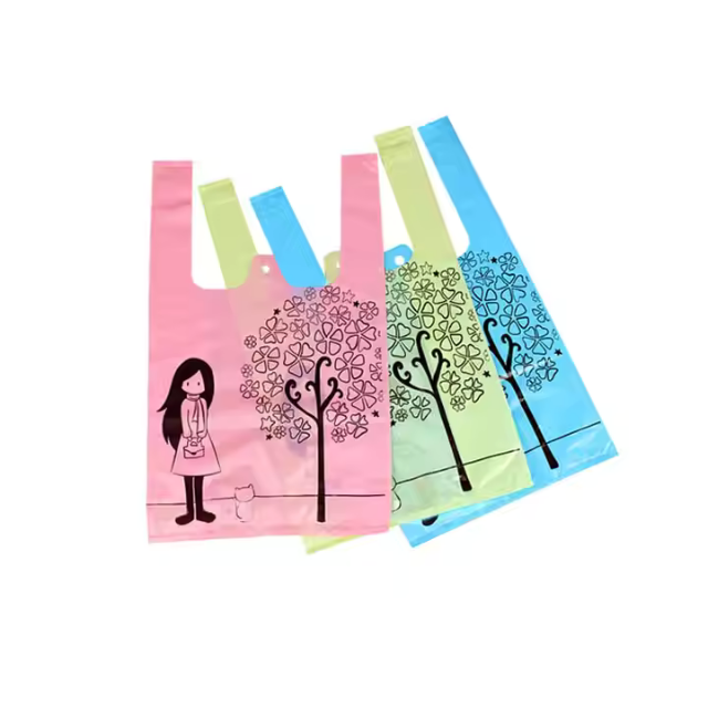 Vente en gros Sac de t-shirt en plastique réutilisable personnalisé Sacs de transport d'épicerie de taille personnalisée pour l'emballage et l'emballage de supermarché