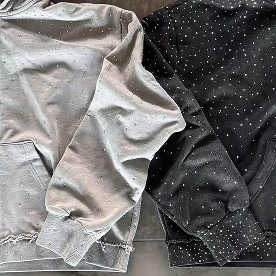Sweat-shirt à capuche zippé pour homme en gros, personnalisé, avec strass, de haute qualité, tendance, appliqué, brodé, délavé à l'acide, effet soleil, hiver