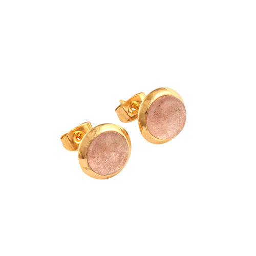Vente en gros de boucles d'oreilles rondes et minimalistes en Quartz cerise, clous d'oreilles en plaqué or avec réglage de la lunette, cadeau pour elle