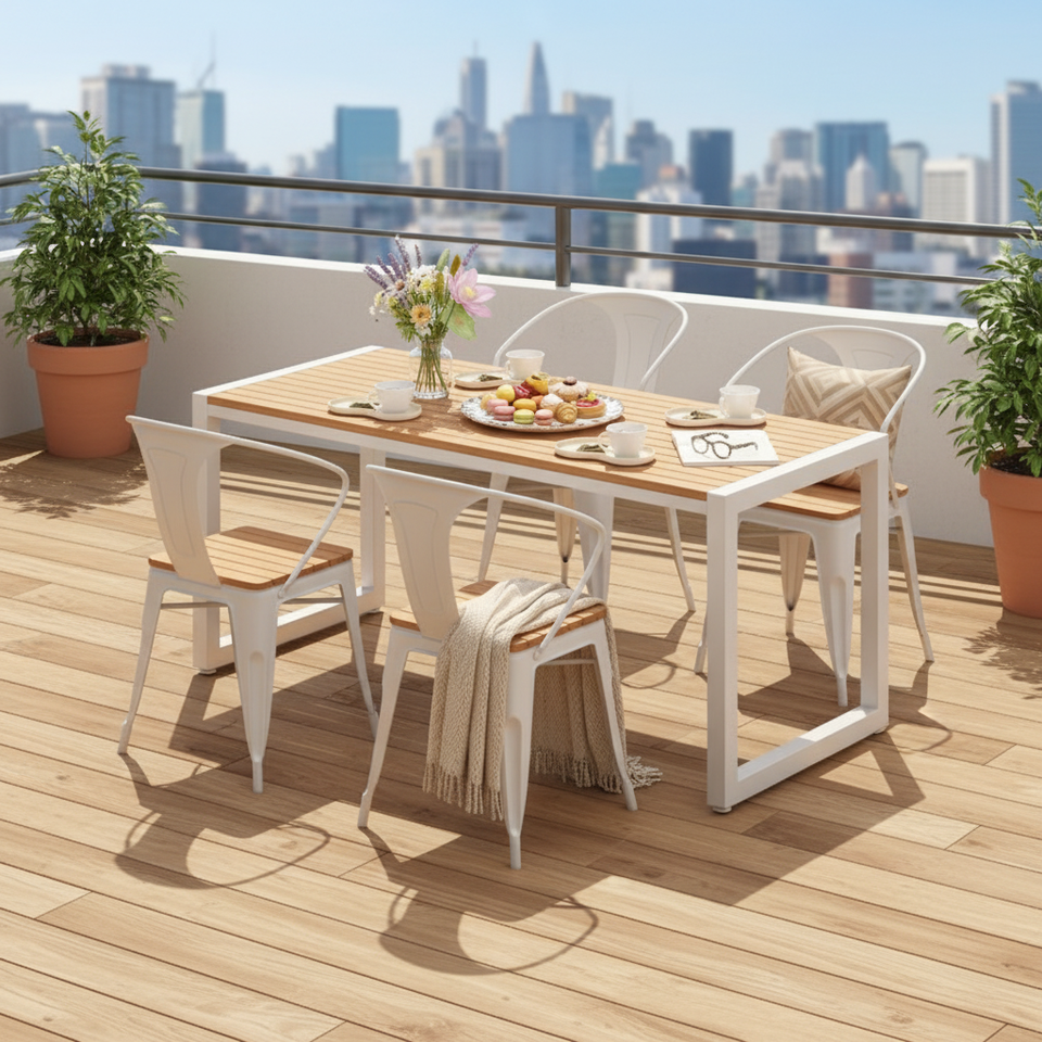Ensemble de table et chaises rondes d'extérieur personnalisées en plastique et bois pour restaurant commercial et balcon – Vente en gros