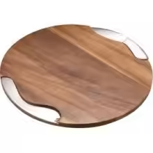 Vente en gros Plateau de service rond en bois de noyer brun rustique personnalisé avec poignées, grandes et petites tailles disponibles par décor impex