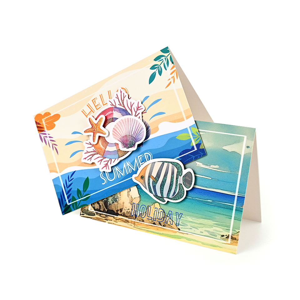 Vente en gros de carapaces de mer personnalisées, autocollants 3D pour les bonnes vacances d'été pour enfants, cartes de remerciement, carte de vœux cadeau avec enveloppe