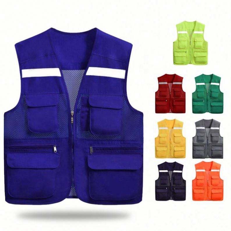 Veste de sécurité personnalisée en gros, veste de travail sans manches en polyester, veste de bénévole multi-poches avec n'importe quel logo