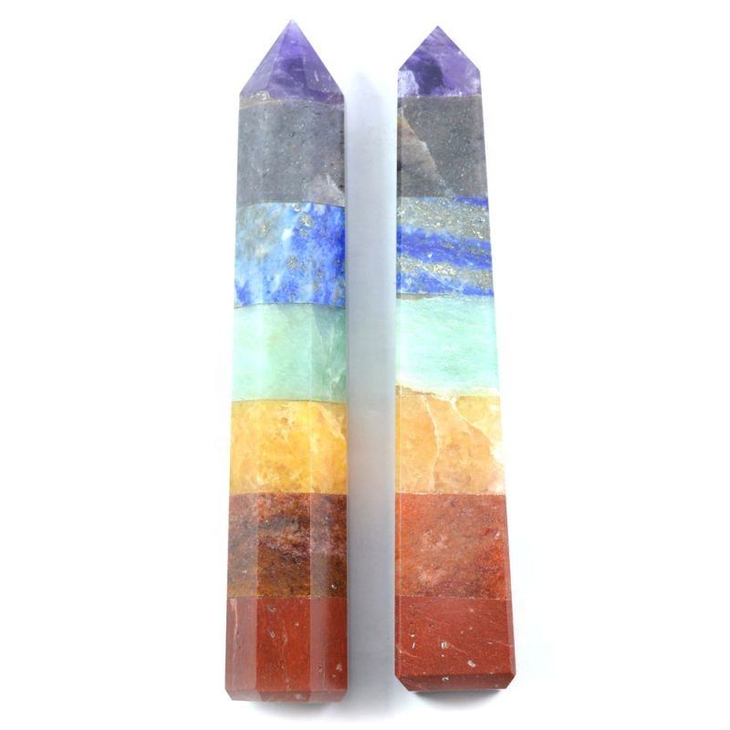 Vente en gros d'obélisques Sevan Chakra personnalisées Boîte de méditation bohème de haute qualité Cristaux de pierres semi-précieuses pour la guérison
