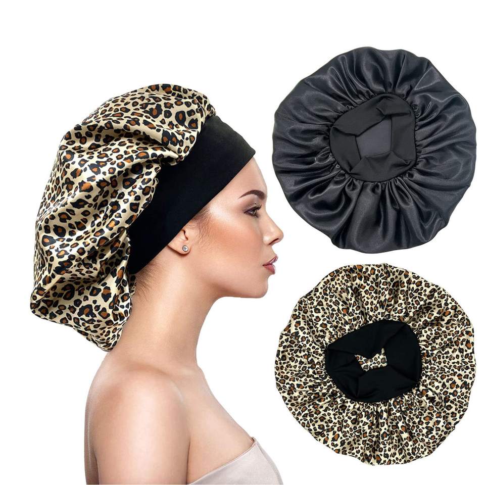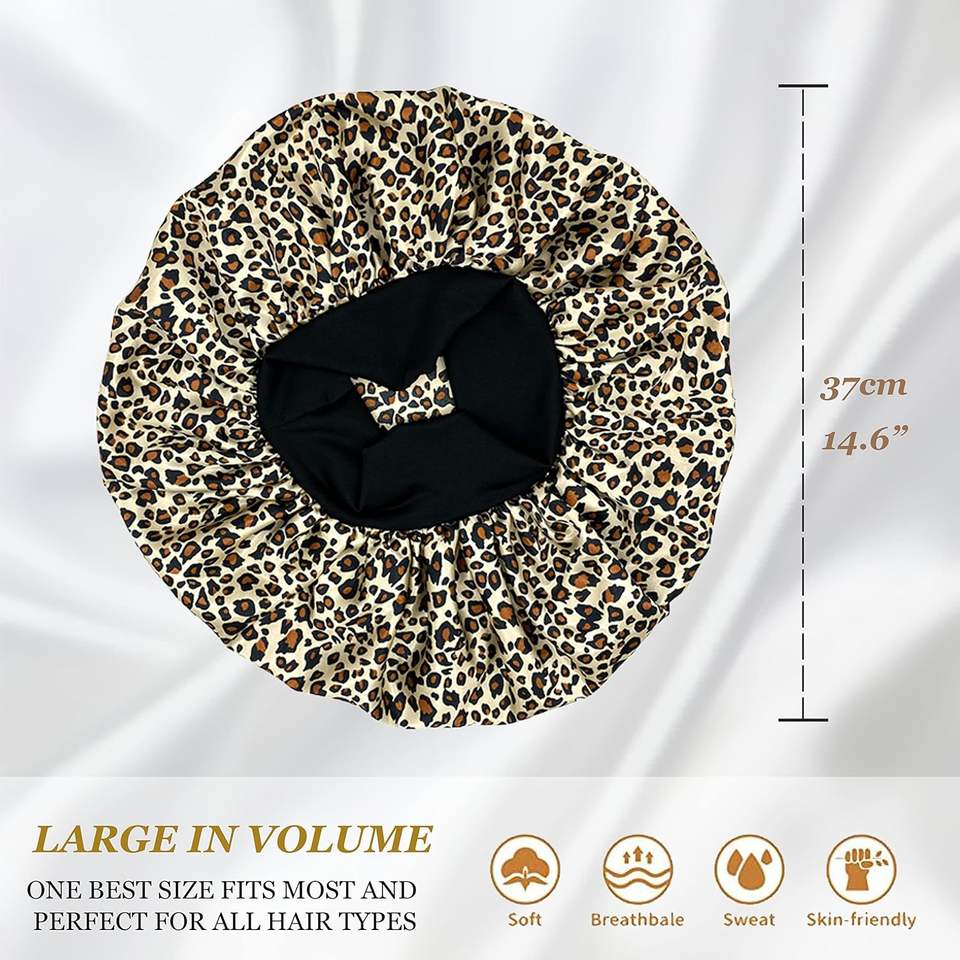 Wholesale Custom Single Layer Super Big Floral Printing Leopard Breathable High Stretchy Beauty Sleeping Cap Silky Satin Bonnet