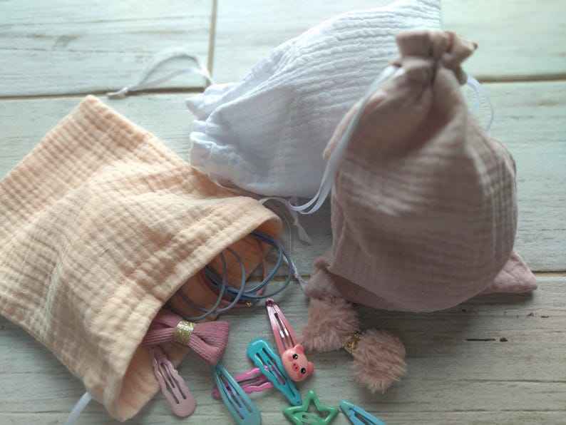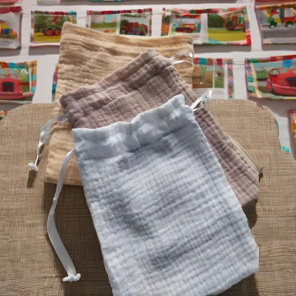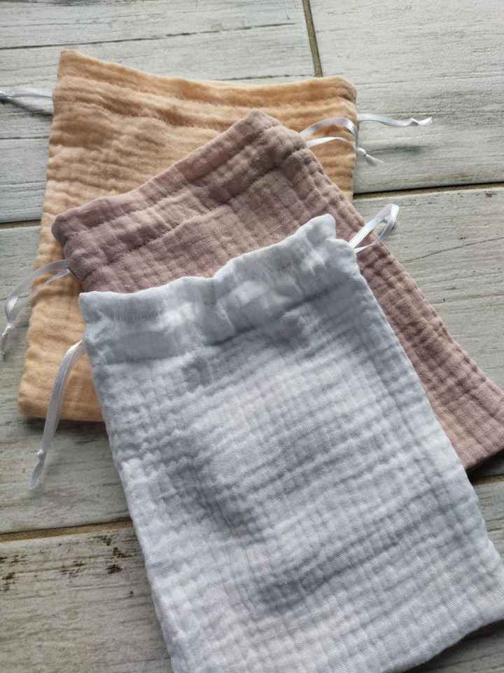 Sac cadeau en coton mousseline double gaze à cordon de serrage, personnalisable en taille et en couleur, pour le rangement de la poussière