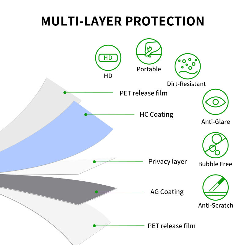 Anti-éraflure, Anti-ESPION, Anti-Huile, Anti-glare, Imperméable, Sans bulles