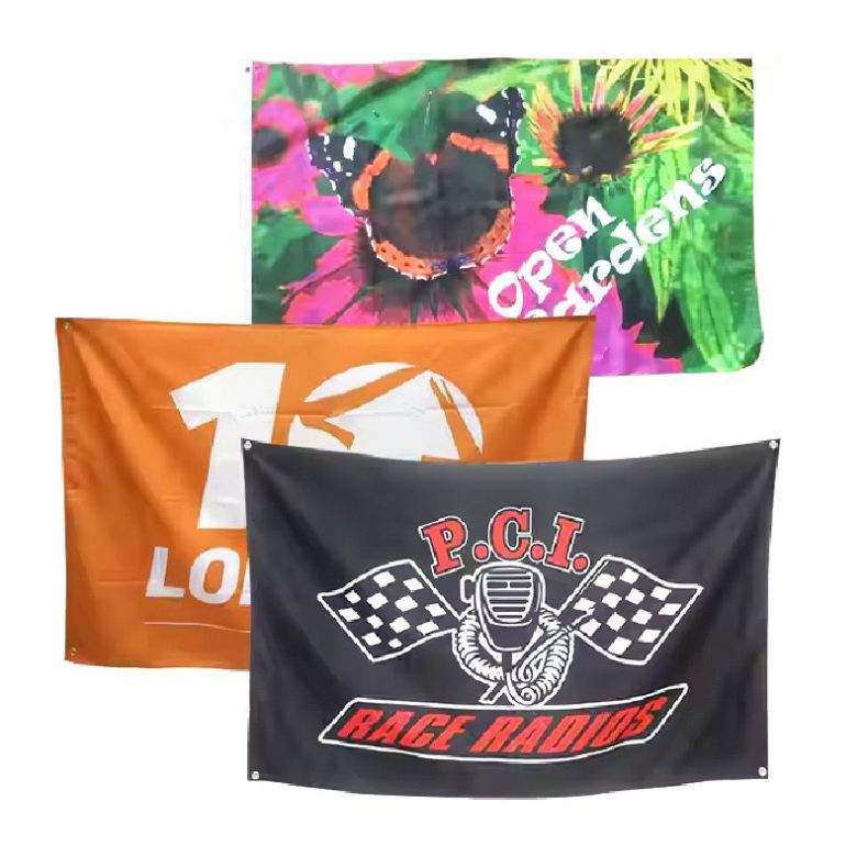 Drapeau publicitaire extérieur en polyester sur mesure, impression numérique, design personnalisé avec logo sur mesure