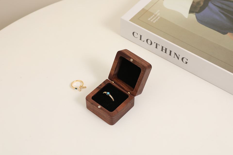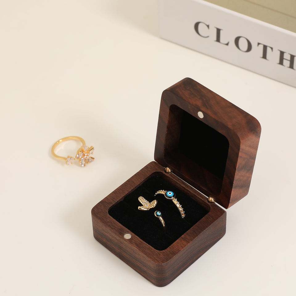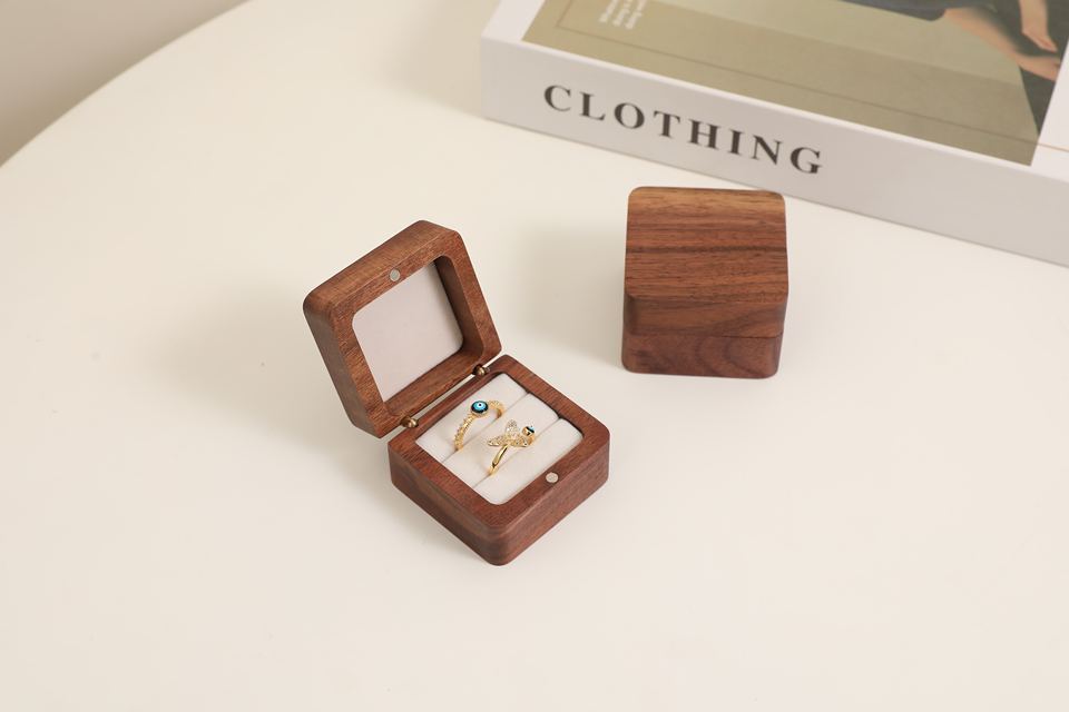 Boîtes à bagues personnalisées en gros, petites et grandes, marron foncé, présentoirs à souvenirs avec couvercle coulissant à charnière, emballage en bois de noyer et bambou