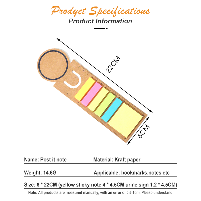 Wholesale Custom Sticky Note School Stationery Office Supplies Promotional Gift Paper Bookmark for Book Post It Notes with Ruler