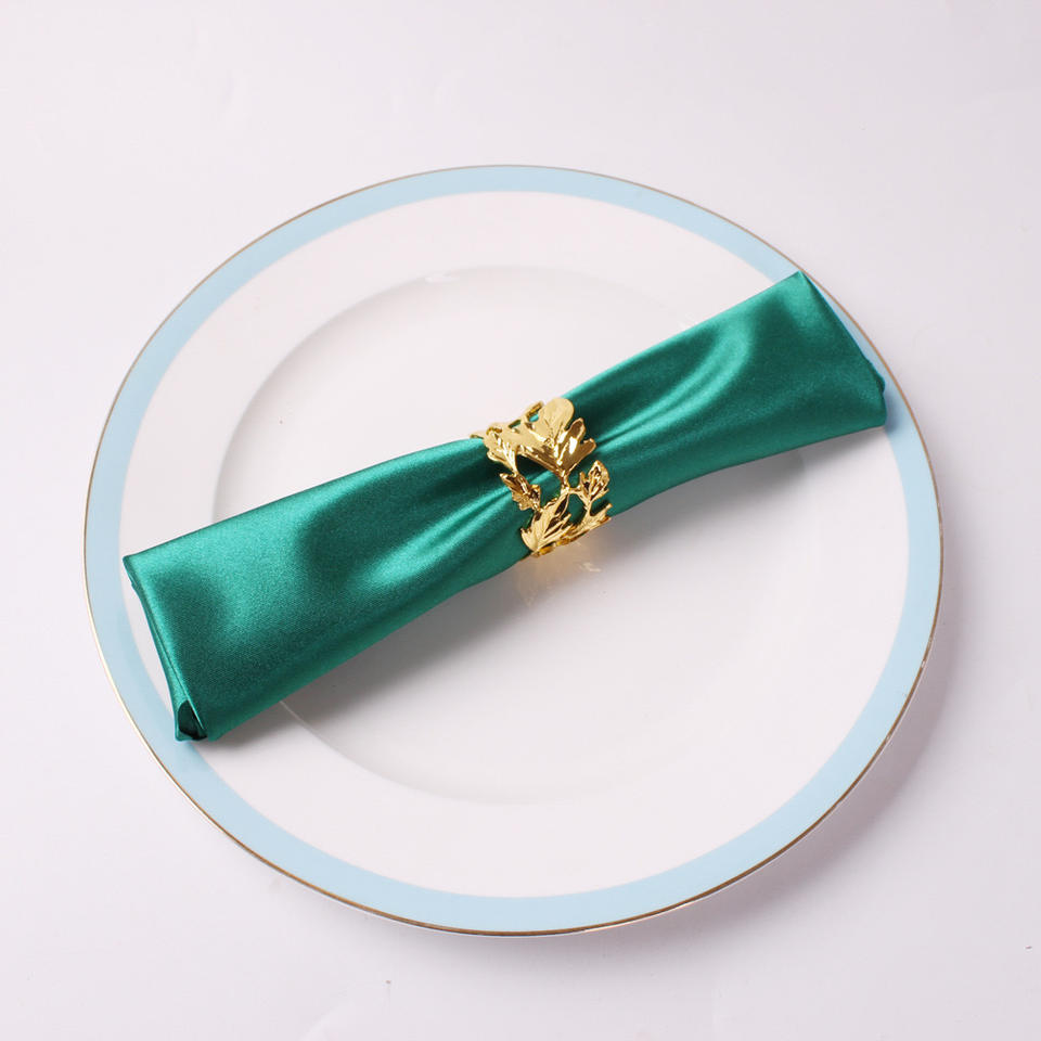 Anneaux de serviette en feuille ronde plaqués or en métal sur mesure en gros, anneau de serviette en feuille d'argent en alliage de zinc pour mariage
