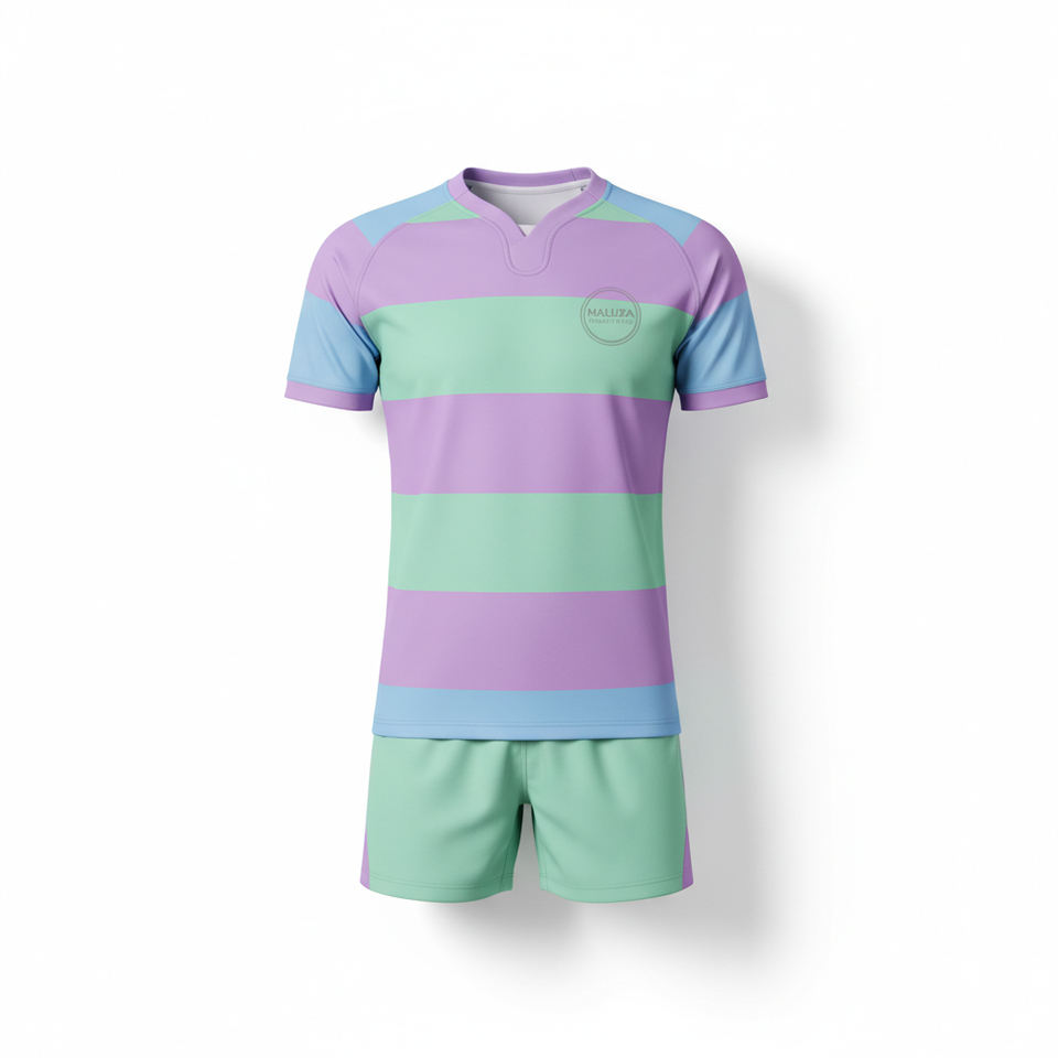 Uniforme de rugby personnalisé en gros, tissu polyester de haute qualité, coutures renforcées, kit d'équipe de rugby professionnel