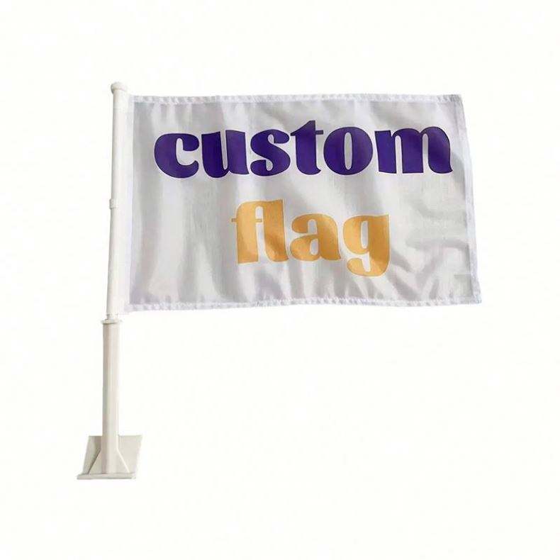 Drapeau de voiture en polyester tricoté par sublimation personnalisé en gros avec poteau à clip pour fenêtre, décoration extérieure avec logo personnalisé