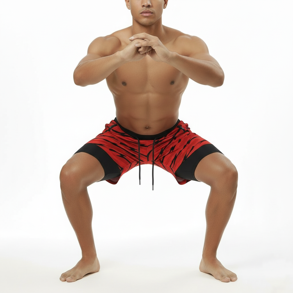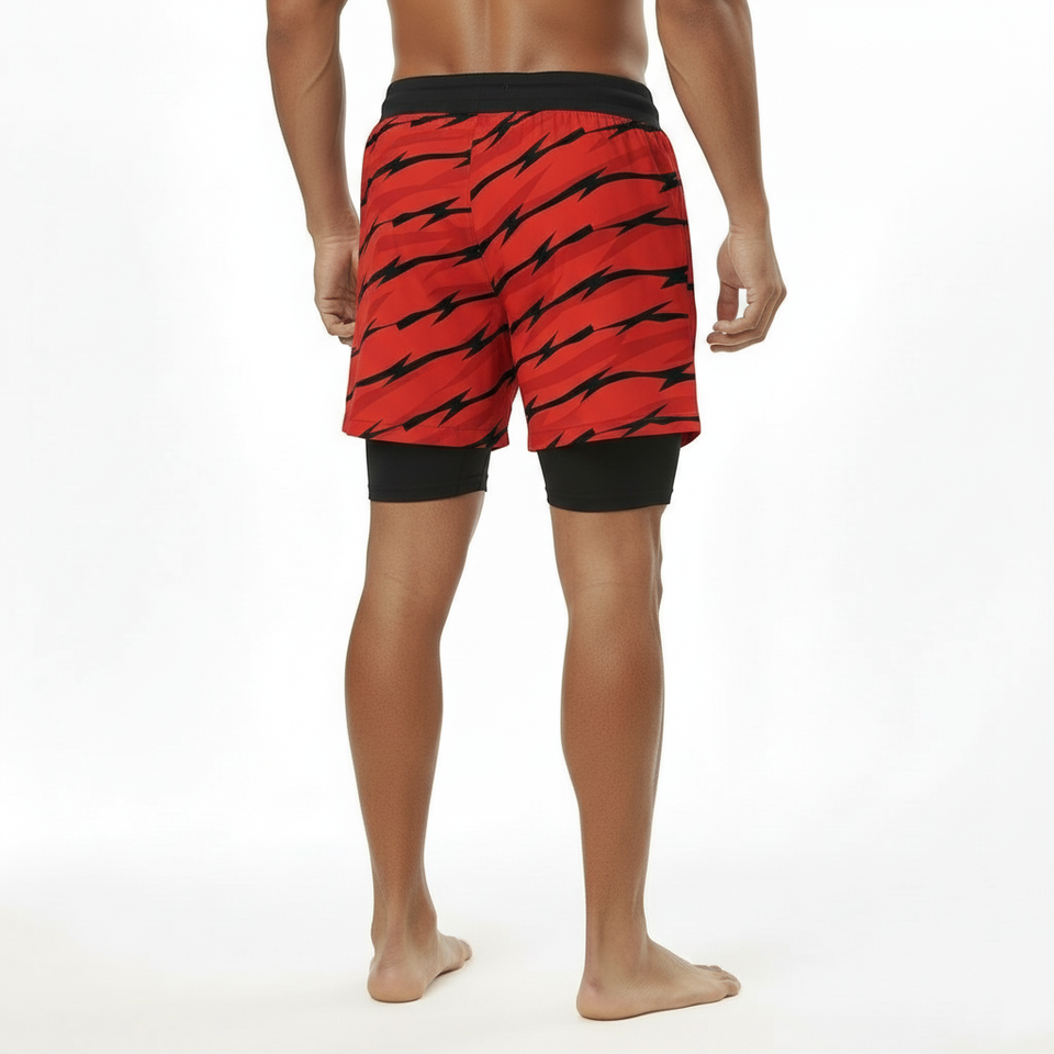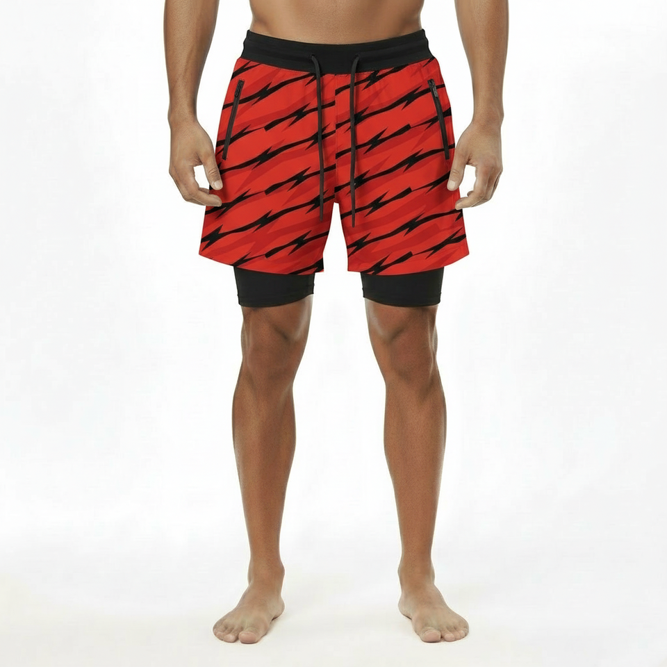 Shorts de sport cargo pour hommes, personnalisés, en polyester, 2-en-1, imprimés, pour fitness, gym, entraînement et course à pied, vente en gros