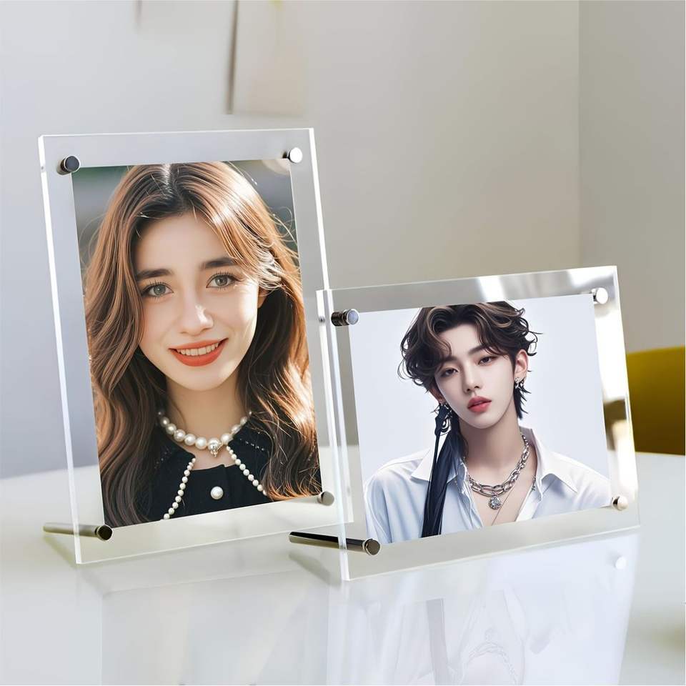 Cadre photo en verre transparent personnalisé en gros, support de signalisation en plexiglas pour comptoir, support photo vertical en T, cadre photo en verre