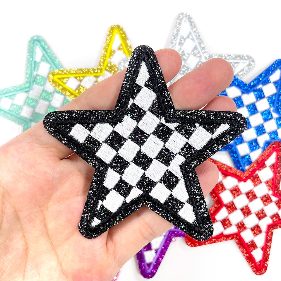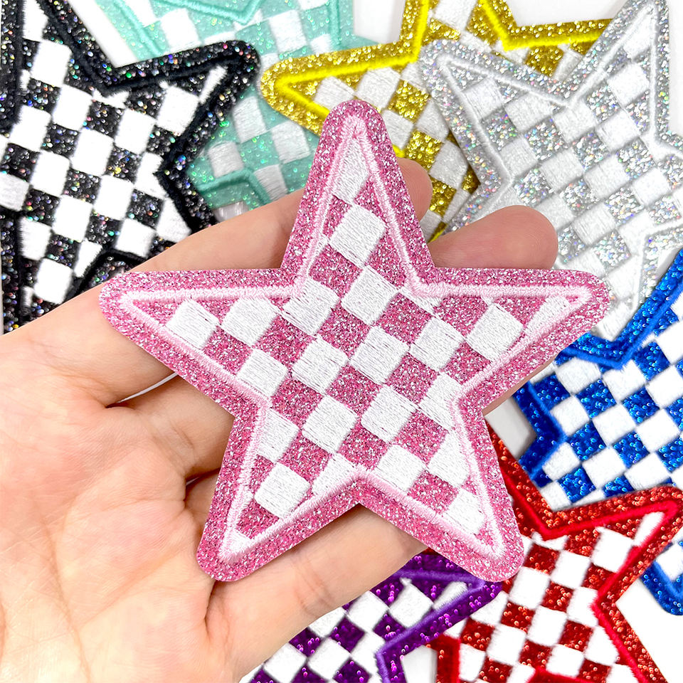 Vente en gros de patchs brodés en tissu en forme d'étoile en damier bicolore personnalisés Mignons écussons thermocollants
