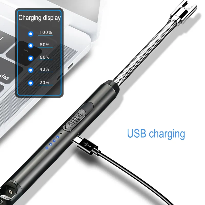 Vente en gros personnalisé USB allume-cigare électronique vert coupe-vent métal bougie briquet de cuisine