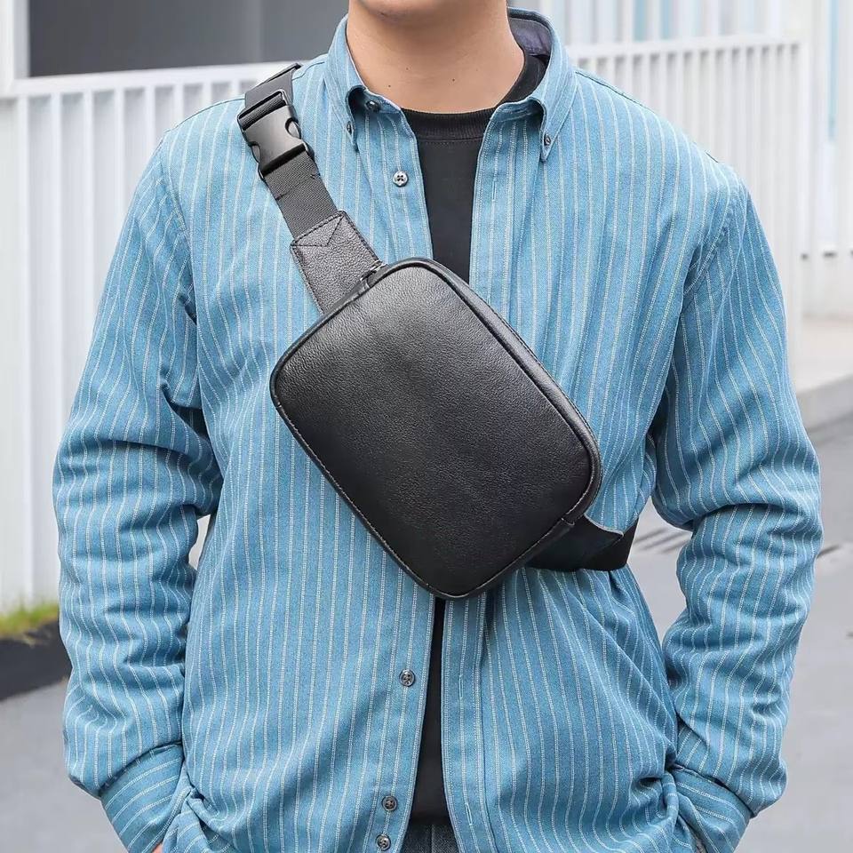 Sac de poitrine convertible en cuir véritable unisexe personnalisé en gros, sac banane, sac bandoulière, sac à main tendance, portable pour les voyages