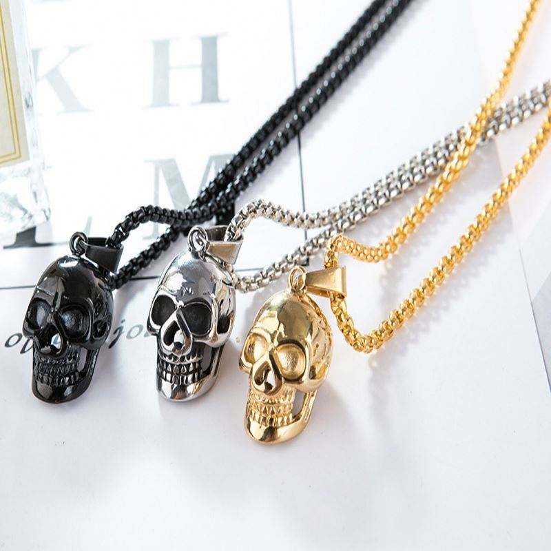 Vente en Gros Personnalisé Unisexe Hip Hop Gothique Punk Creux Petit Crâne Pendentif en Acier Inoxydable Collier pour Hommes et Garçons