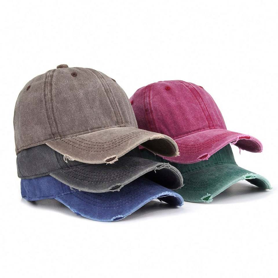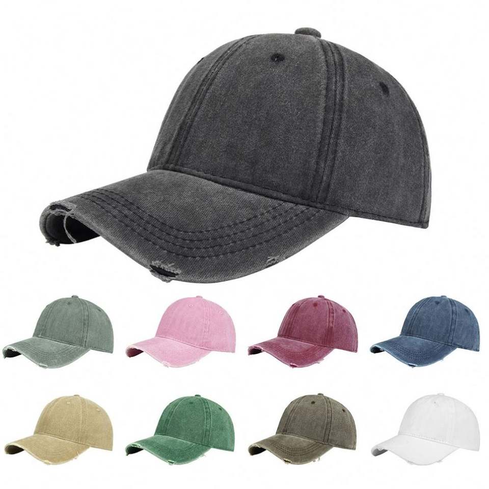 Casquette de baseball 6 panneaux personnalisée en coton délavé, style rétro vintage, effet vieilli, bordure déchirée, style sportif, Gorras disponibles en gros
