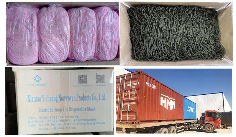 Earloop has two types of package way: 1) 70*35*50cm 12 Small bags/Carton; 2) 52*38*36cm One Bag One Carton, Carded Packing Way.