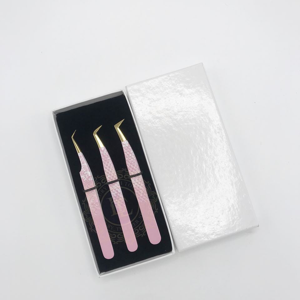 Pince à cils en acier inoxydable à revêtement en poudre blanc rose personnalisée en gros avec marque privée Diamond Grip Gold Point