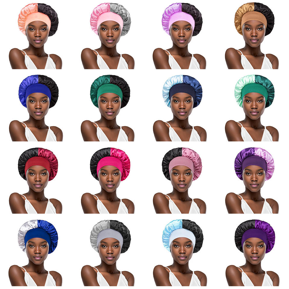 Wholesale Custom Wide Brim Color Block Sleep Cap for Women Fashionable Stretchy Cap with Two Tone Hair Protection Shower Cap