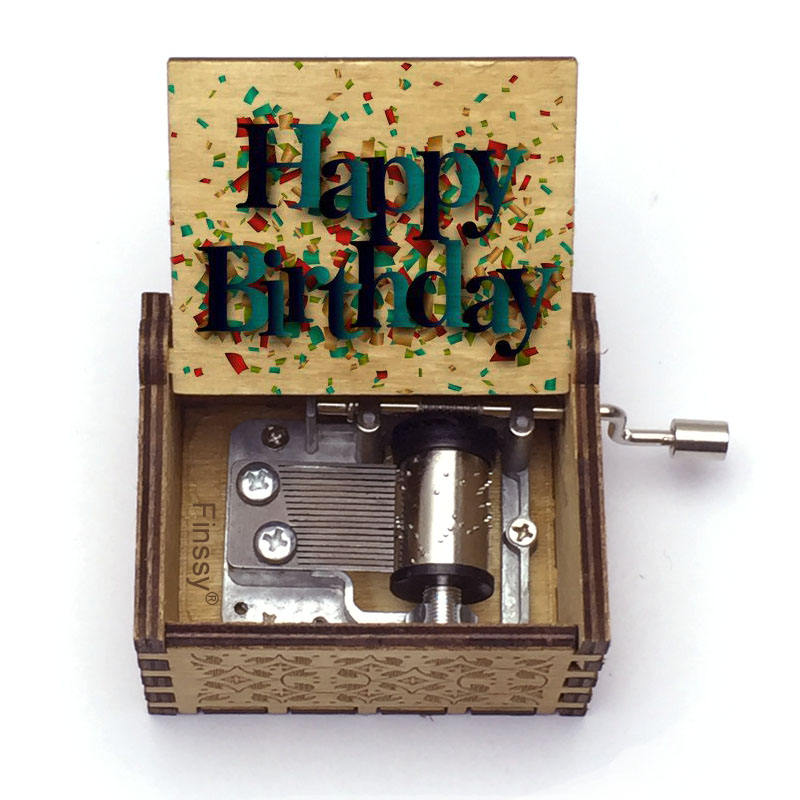 Boîte à musique en bois personnalisée avec votre logo et photo, unique, à manivelle, avec chanson Joyeux Anniversaire, cadeau pour maman, papa, fils, fille
